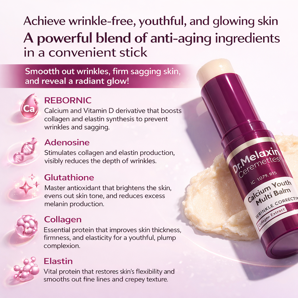 Dr. Melaxin Multi-Balm Lift & Smooth Anti-Aging is a revolutionary skincare solution powered by a unique, advanced ingredient designed to support skin elasticity, hydration, and renewal. Unlike ordinary formulas, this innovative balm-stick delivers deep moisture, visible firming, and soothing repair in one effortless step. Combined with its targeted, mess-free application, this exclusive ingredient helps smooth fine lines, strengthen the skin barrier, and reveal healthier, more youthful-looking skin—making it a truly unique product in today’s skincare market.